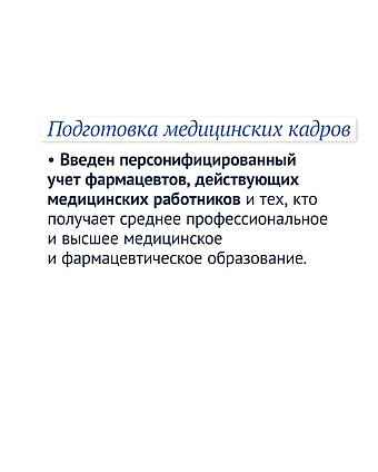 Введен персонифицированный учет фармацевтов, действующих медицинских работников и тех, кто получает среднее профессиональное и высшее медицинское и фармацевтическое образование.