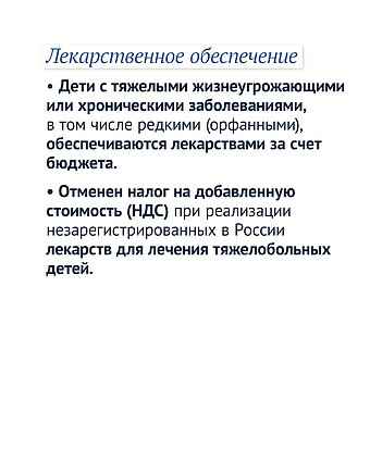 Отменен налог на добавленную стоимость (НДС) при реализации незарегистрированных в России лекарств для лечения тяжелобольных детей.