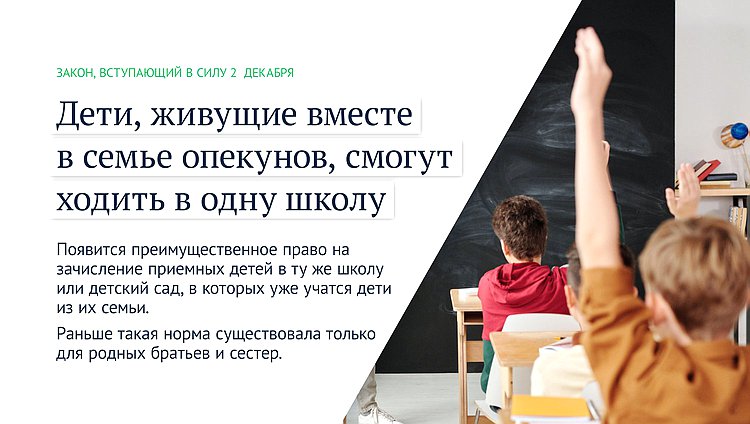 Право детей, находящихся под опекой в одной семье, на зачисление в одни и те же школу или детский сад, важные изменения в законе о деятельности иноагентов, обязанность госорганов вести странички в соцсетях и другие нововведения декабря — в нашем материале