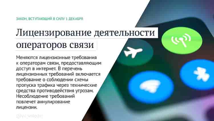 Меняются лицензионные требования к операторам связи, предоставляющим доступ в интернет. В перечень таких требований включается соблюдение схемы пропуска трафика через технические средства противодействия угрозам. Несоблюдение требований повлечет аннулирование лицензии.