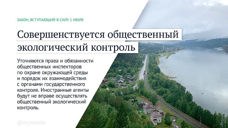 Уточняются права и обязанности общественных инспекторов по охране окружающей среды и порядок их взаимодействия с органами государственного контроля. Иностранные агенты будут не вправе осуществлять общественный экологический контроль.
