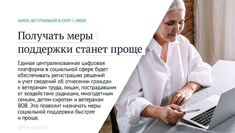 Единая централизованная цифровая платформа в социальной сфере будет обеспечивать регистрацию решений и учет сведений об отнесении граждан к ветеранам труда, лицам, пострадавшим от воздействия радиации, многодетным семьям, детям-сиротам и ветеранам ВОВ. Это позволит назначать меры социальной поддержки быстрее и проще.