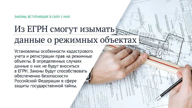 Установлены особенности кадастрового учета и регистрации прав на режимные объекты. В определенных случаях данные о них не будут вноситься в ЕГРН. Законы будут способствовать обеспечению безопасности Российской Федерации в сфере защиты государственной тайны.
