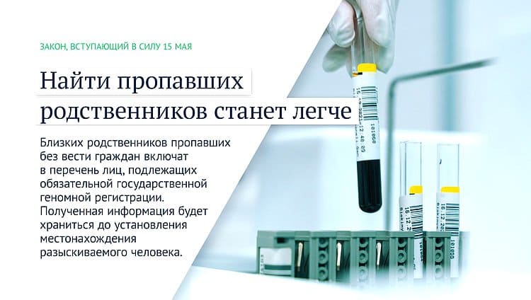Близких родственников пропавших без вести граждан включат в перечень лиц, подлежащих обязательной государственной геномной регистрации. Полученная информация будет храниться до установления местонахождения разыскиваемого человека.