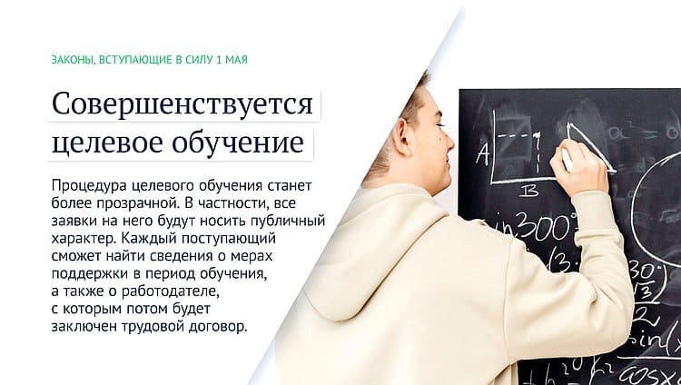 Процедура целевого обучения станет более прозрачной. В частности, все заявки на него будут носить публичный характер. Каждый поступающий сможет найти сведения о мерах поддержки в период обучения, а также о работодателе, с которым потом будет заключен трудовой договор.