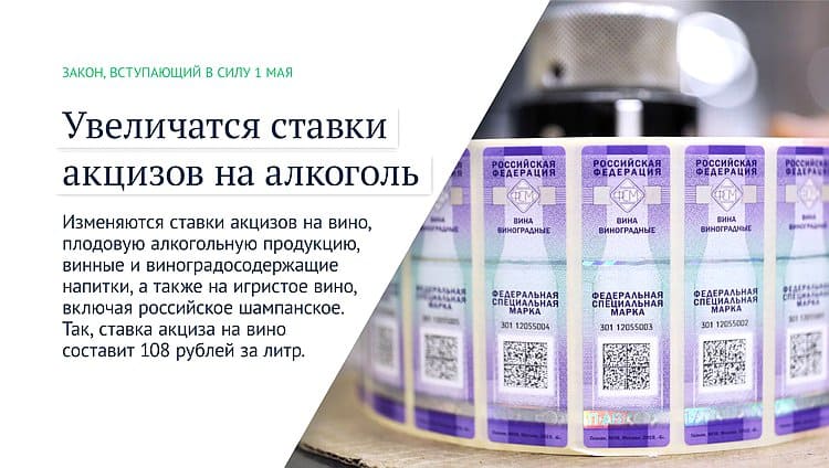Изменяются ставки акцизов на вино, плодовую алкогольную продукцию, винные и виноградосодержащие напитки, а также на игристое вино, включая российское шампанское. Так, ставка акциза на вино составит 108 рублей за литр.