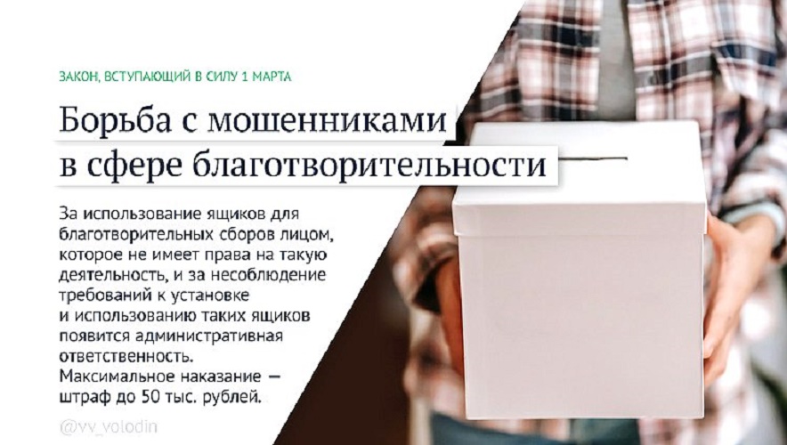 За использование ящиков для благотворительных сборов лицом, которое не имеет права на такую деятельность, и за несоблюдение требований к установке и использованию таких ящиков появится административная ответственность. Максимальное наказание — штраф до 50 тыс. рублей.