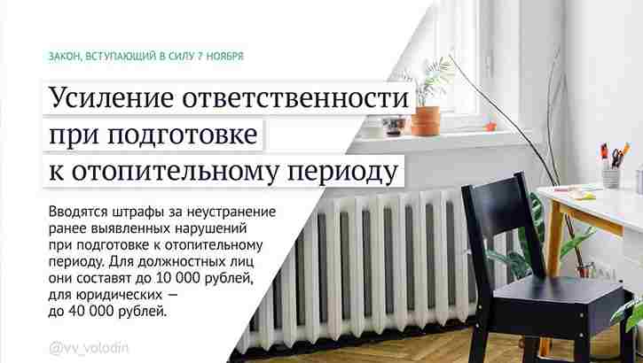 Штрафы за неустранение ранее выявленных нарушений при подготовке к отопительному периоду, ужесточение ответственности иноагентов, поддержка семей участников СВО и другие законы ноября — в нашем материале