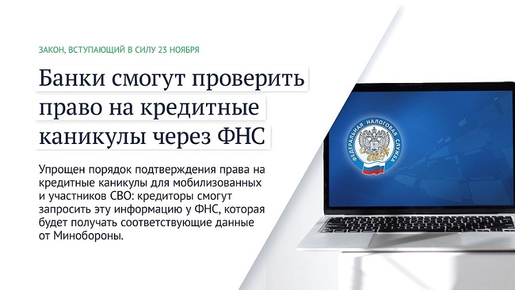 Упрощен порядок подтверждения права на кредитные каникулы для мобилизованных и участников СВО: кредиторы смогут запросить эту информацию у ФНС, которая будет получать соответствующие данные от Минобороны.