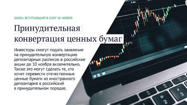 Инвесторы смогут подать заявление на принудительную конвертацию депозитарных расписок в российские акции до 10 ноября включительно. Также это могут сделать те, кто хочет перевести отечественные ценные бумаги из иностранного депозитария в российский в принудительном порядке.