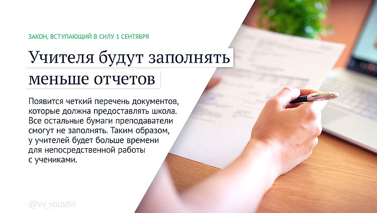 Появится четкий перечень документов, которые должна предоставлять школа. Все остальные бумаги преподаватели смогут не заполнять. Таким образом, у учителей будет больше времени для непосредственной работы с учениками.