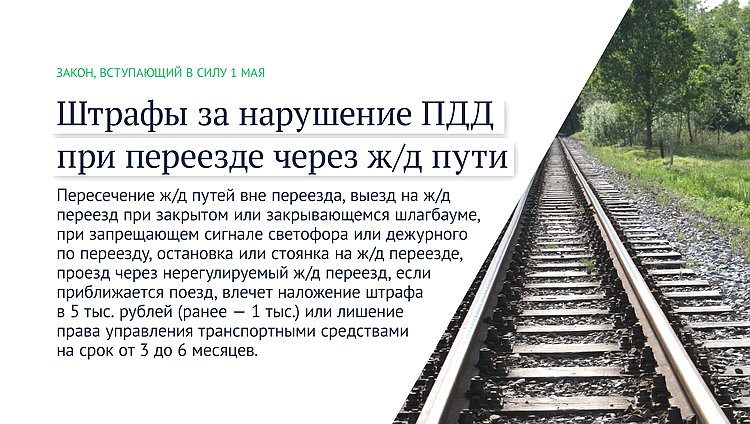Повышен штраф за другие нарушения правил проезда через ж/д переезды — до 5 тыс. рублей (ранее — 1 тыс.).