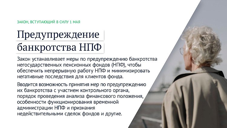 Закон устанавливает меры по предупреждению банкротства негосударственных пенсионных фондов (НПФ), чтобы обеспечить непрерывную работу НПФ и минимизировать негативные последствия для клиентов фонда.