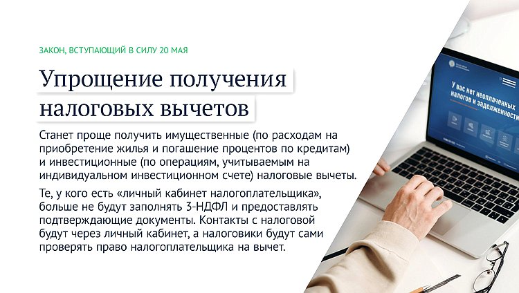 Станет проще получить имущественные (по расходам на приобретение жилья и погашение процентов по кредитам) и инвестиционные (по операциям, учитываемым на индивидуальном инвестиционном счете) налоговые вычеты.