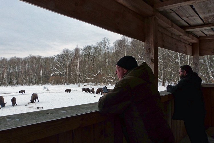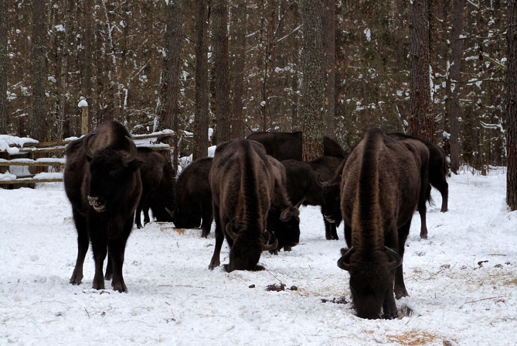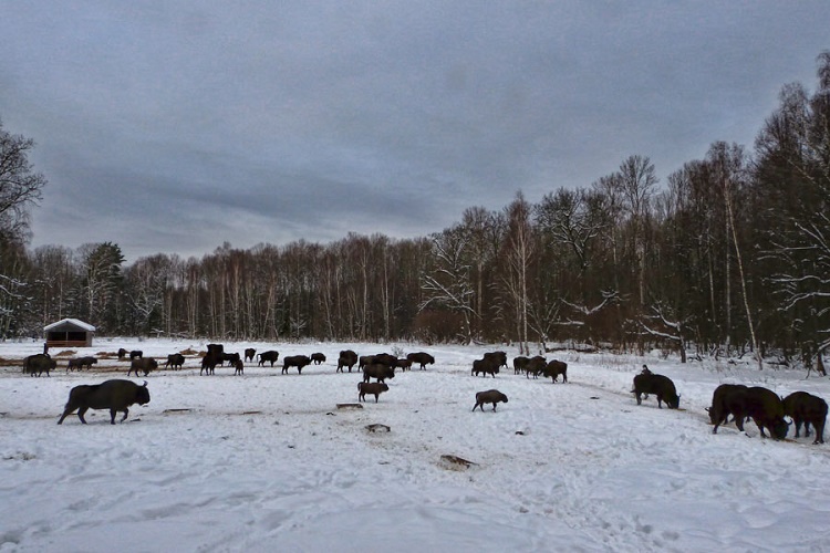 Зима – самое удобное время для этого. Когда глубина снежного покрова превышает полметра, даже таким могучим зверям, как зубры, трудно передвигаться. Поэтому их суточный ход снижается до минимума и состоит из коротких переходов в окрестностях подкормочных площадок.
